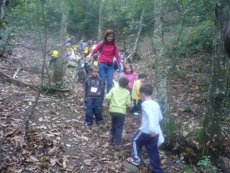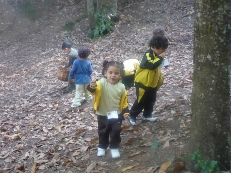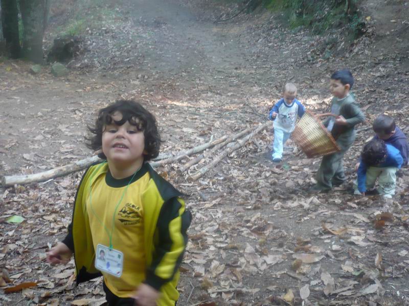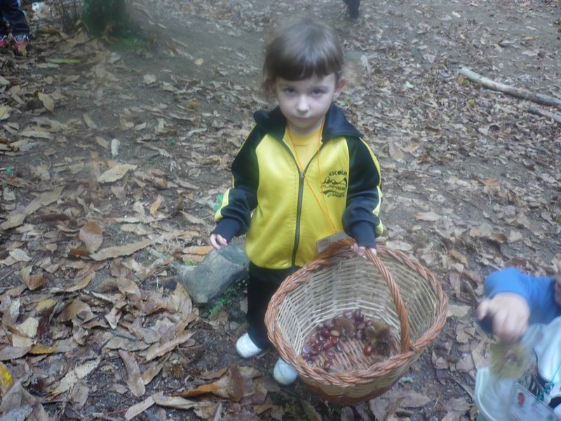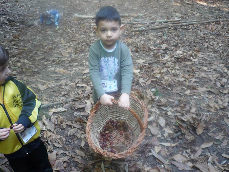 Després les mateixes monitores ens varen portar a fer un passeig per la muntanya on de cop i volta vam trobar moltes, moltes castanyes i glans que vam collir i les anàvem ficant en un cistell.
