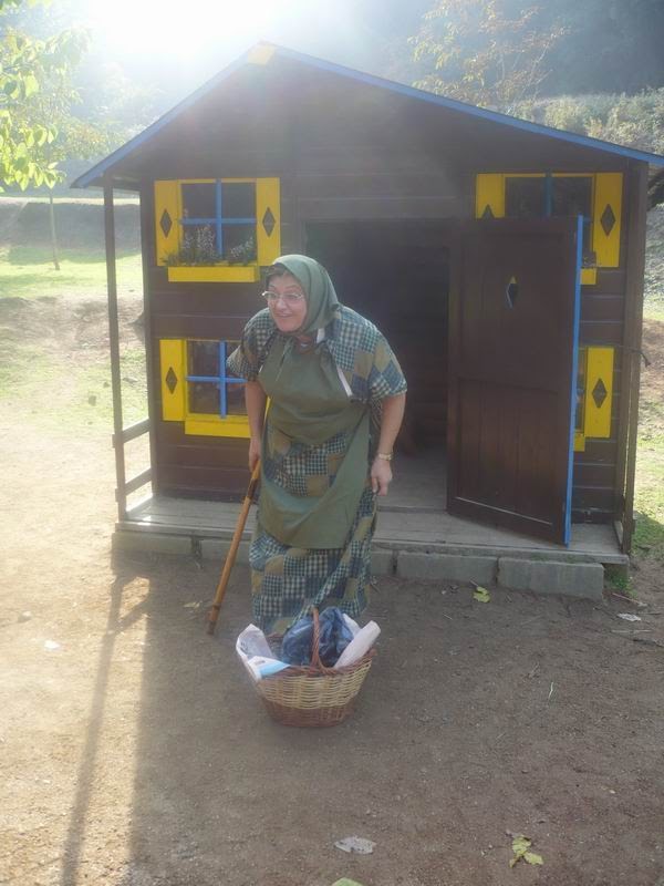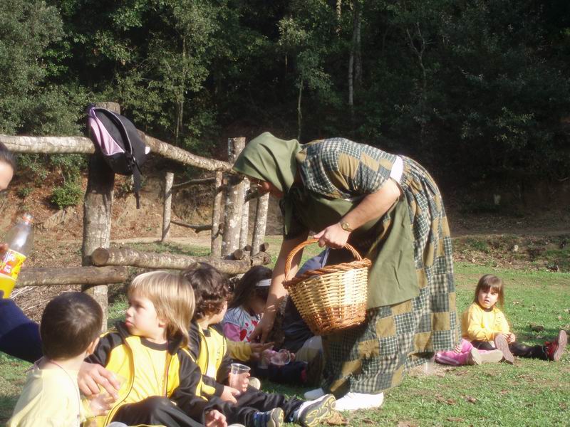 Vam dinar al menjador on teníem les motxilles, i un cop dinat ens esperava una gran sorpresa, la Castanyera!!! que ens va convidar a castanyes i a un refresc.